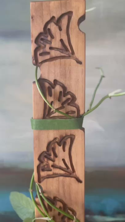 Infuse your garden with graceful natural beauty using our “Ginkgo Bloom” Hand-Finished Wooden Plant Stake. Featuring a series of stylized ginkgo leaf motifs etched with precision, this stake celebrates nature’s elegance while offering practical support for your favorite plants. Each stake is sealed for water resistance and hand-finished to bring out the unique character of the grain. The notched edges are designed not just for style—but for function: they help secure vines, twine, Velcro, or ties, keeping your plant growth supported and trained just the way you want it.