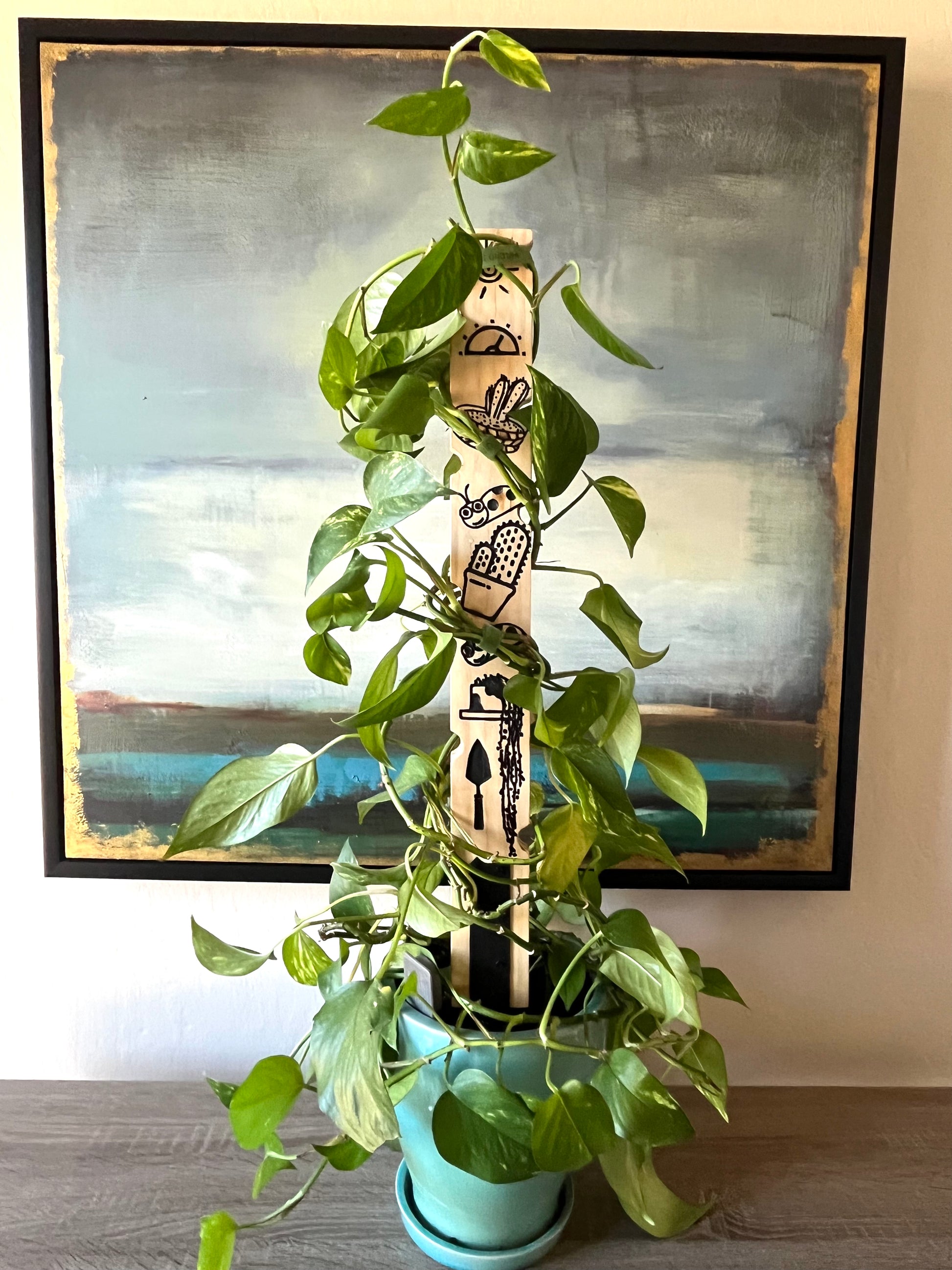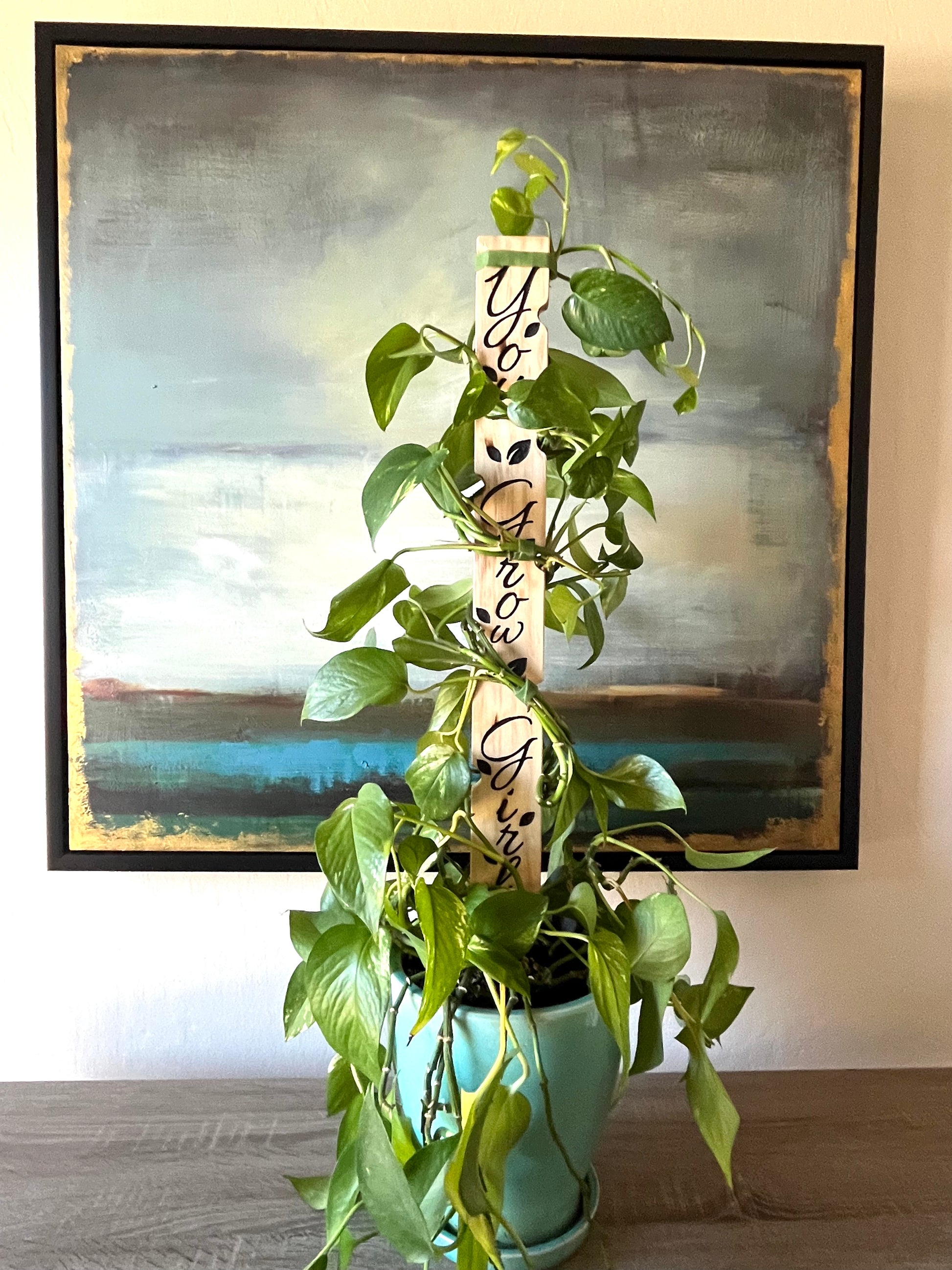 Crafted from pine wood and sealed for moisture resistance, this stake is hand-finished and reinforced with a galvanized steel base for sturdy indoor and covered patio use. Whether you're decorating a leafy corner, gifting it to a friend, or cheering on your own growth journey, this stake adds both fun and function.